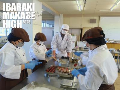 本校では「地域を知り、地域と連携し、地域に貢献する」ことを学校グランドデザインとして、桜川市と「官学連携協定」を結ぶなど、地域との連携活動を行っています。今回は平成12年に国の登録文化財なった旧真壁町の「伊勢屋旅館」さんで2年生が販売実習を行いました。11月の文化祭で「おにぎり弁当」を販売していただいたご縁で、伊勢屋さんで実施ている「伊勢屋カルチャー」というカルチャー教室の受講生さん向けの販売実習をご提案くださいました。今回は「切り絵」教室の受講生の皆さんへ実習で製造した「黒糖饅頭」や「イチゴジャム」を販売しました。地域の方たちとの新たな連携に、生徒たちもとても熱心に取り組んでいます。そして、今後も定期的に伊勢屋旅館さんでの販売実習を継続していく予定です。 桜川市HP
